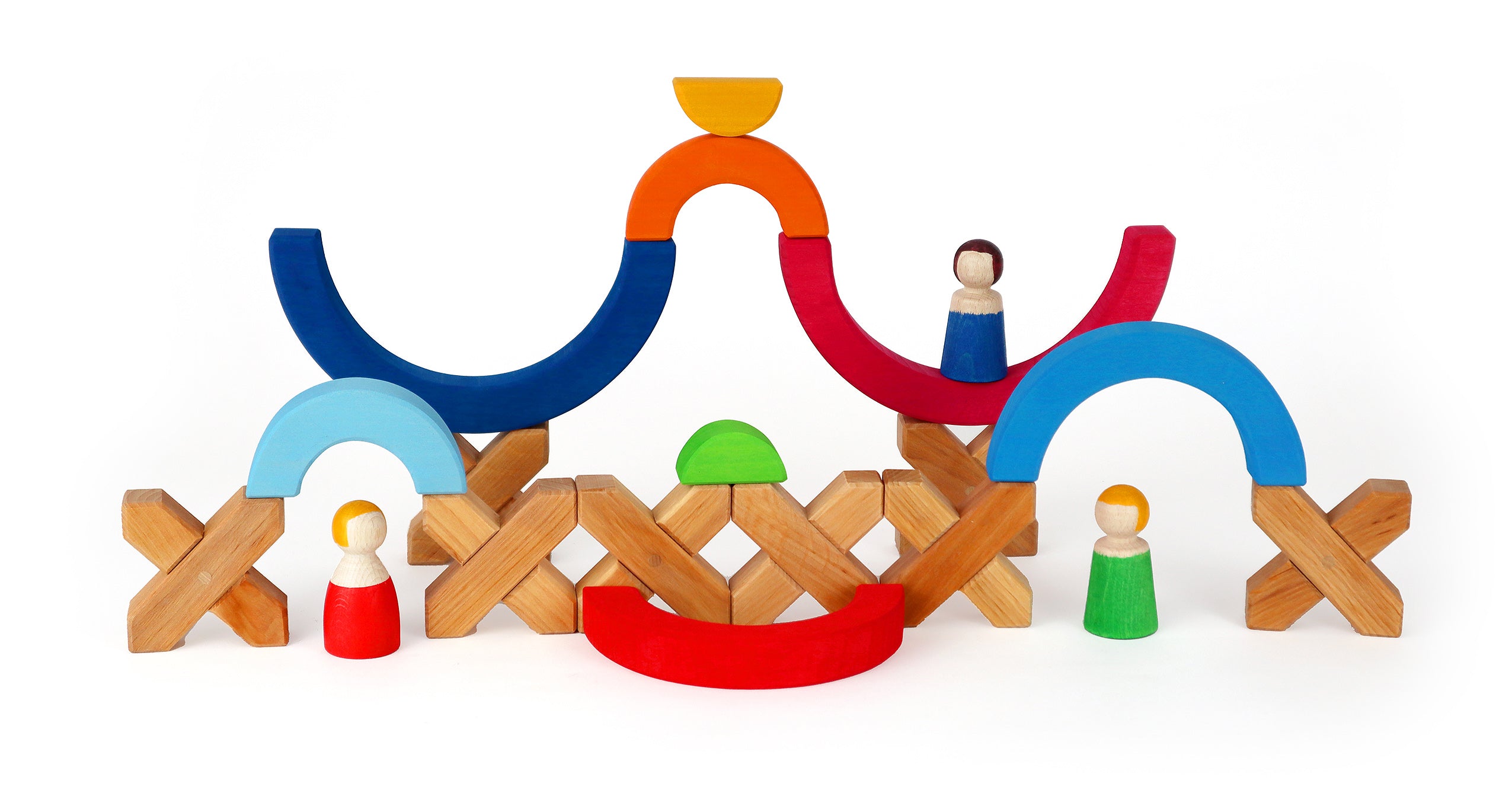 Lifestyle photo shows the X Blocks together with Little People and Little Arches Set, not included in this set.