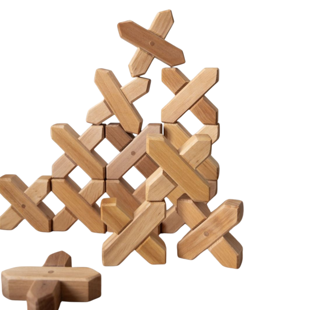 These sturdy and versatile Bauspiel wooden blocks come in the shape of an X, and will stimulate rich open ended play opportunities, supporting healthy child development.