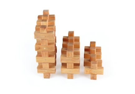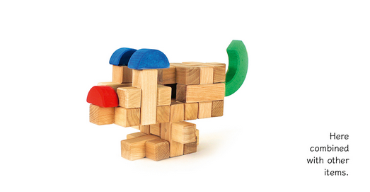 Bauspiel wooden blocks are pleasing to touch, foster spatial awareness, fine motor and communication skills, as part of healthy sense development.