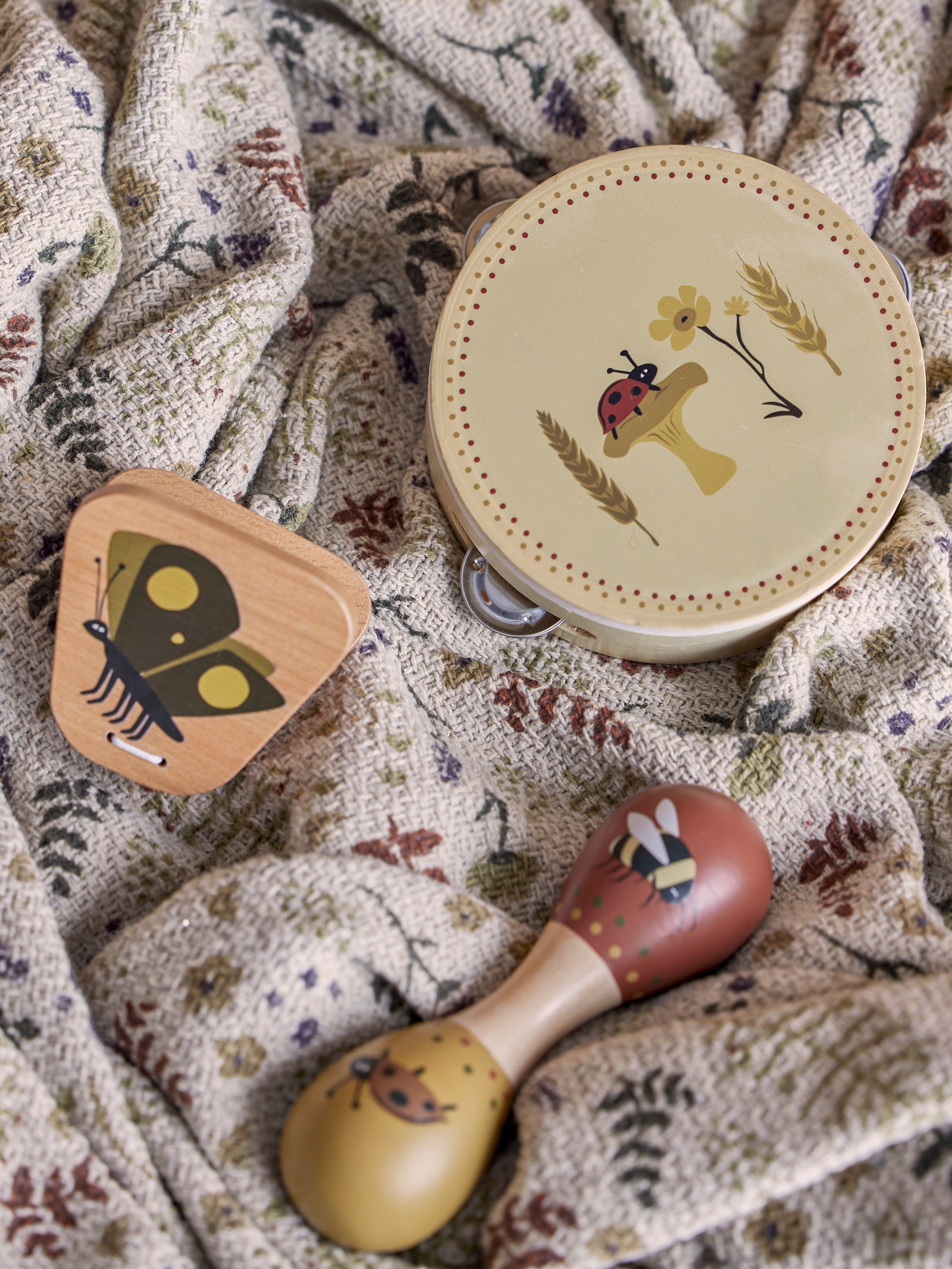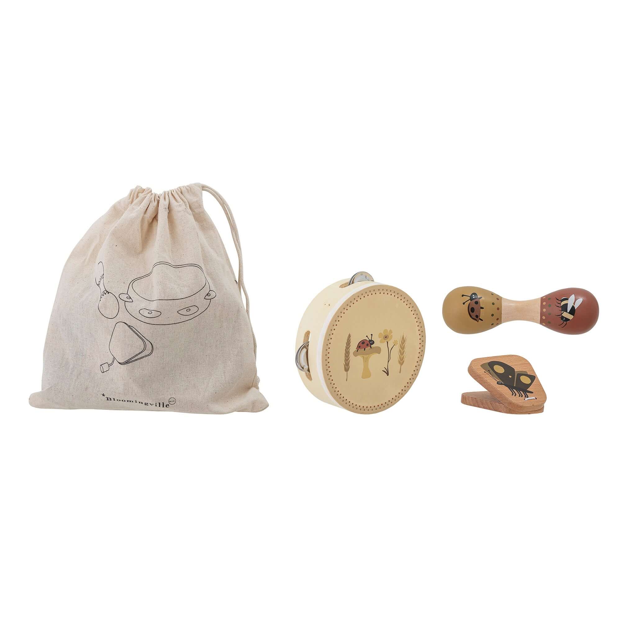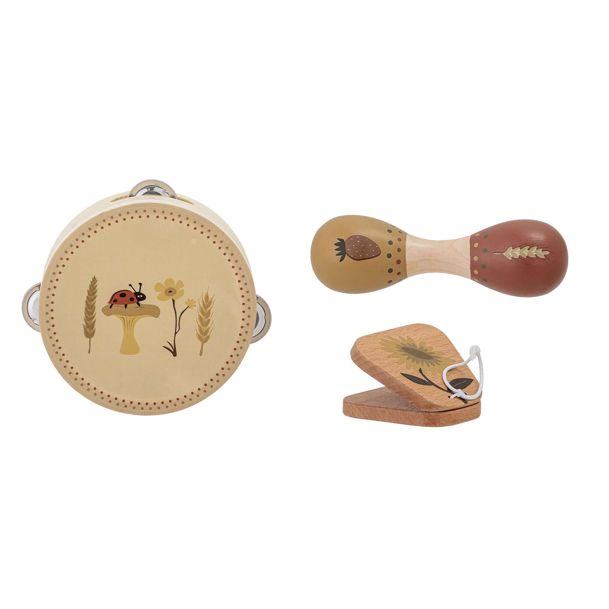 The Driss Musical Instrument by Bloomingville MINI is a set of 3 amazing percussion instruments. The musical instruments have a lovely and sweet pattern of summer vibes and will definitely bring a smile to the home. The instruments are both really decorative and functional at the same time and fits in any children's home.