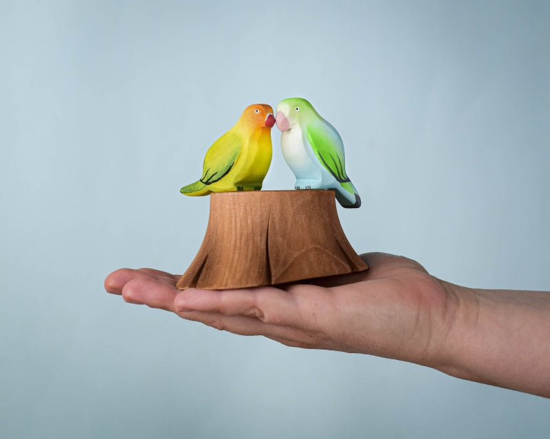 Bring the beauty of nature to your child’s playtime with the handcrafted Tree Stump and Lovebirds Set. This delightful collection includes one Tree Stump and two charming Lovebirds—Green and Blue—each intricately carved and painted by hand to celebrate the elegance of wildlife.