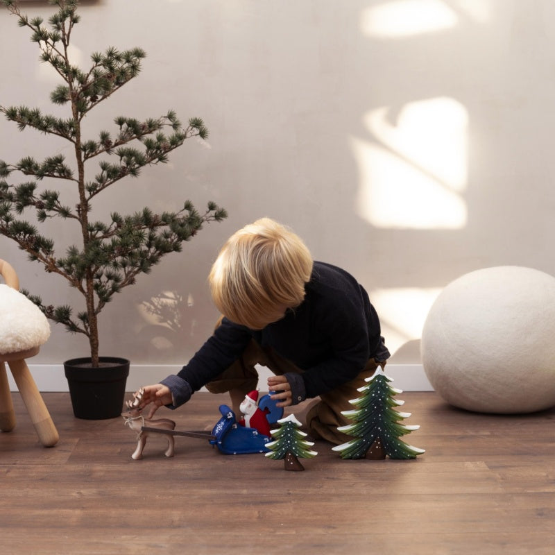 Lovingly carved from sustainably sourced wood and finished with non-toxic, water-based dyes, this reindeer is not only safe for children aged 3 and up but also eco-friendly. The smooth, natural texture of the wood and the gentle hand-painted details make this reindeer a charming addition to any toy collection. Its sturdy design is perfect for imaginative play, allowing children to explore stories of winter wonderlands and holiday adventures.
