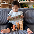Crafted from sustainably sourced wood and painted with child-safe, water-based colours, each element invites exploration. The rounded shapes and smooth surfaces are perfect for small hands, while the multilingual storybook (English, German, French, Dutch, Romanian) enriches playtime with storytelling and language discovery.