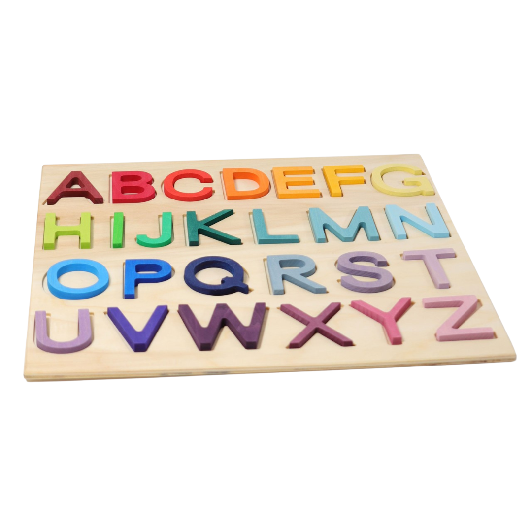 Materials: letters made from lime wood, non-toxic water based color stain, frame made from birch or poplar ply wood, non-toxic plant based oil finish.