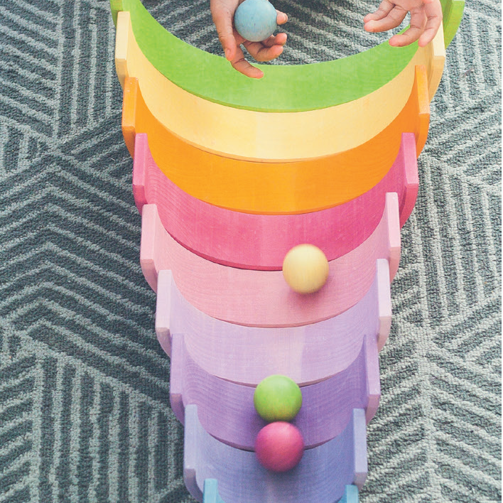 These small solid wooden balls are the perfect size for a variety of marble runs. They bridge the gap between our large wooden balls (10239, 10238, 93120) and the small wooden marbles (10225). Combined with the sorting boards (10576, 10577), they are a wonderful 3-D matching puzzle and sorting game for even the littlest ones. With the Building Rings (10163, 10164), the balls can grow up into the sky as a balance game.
