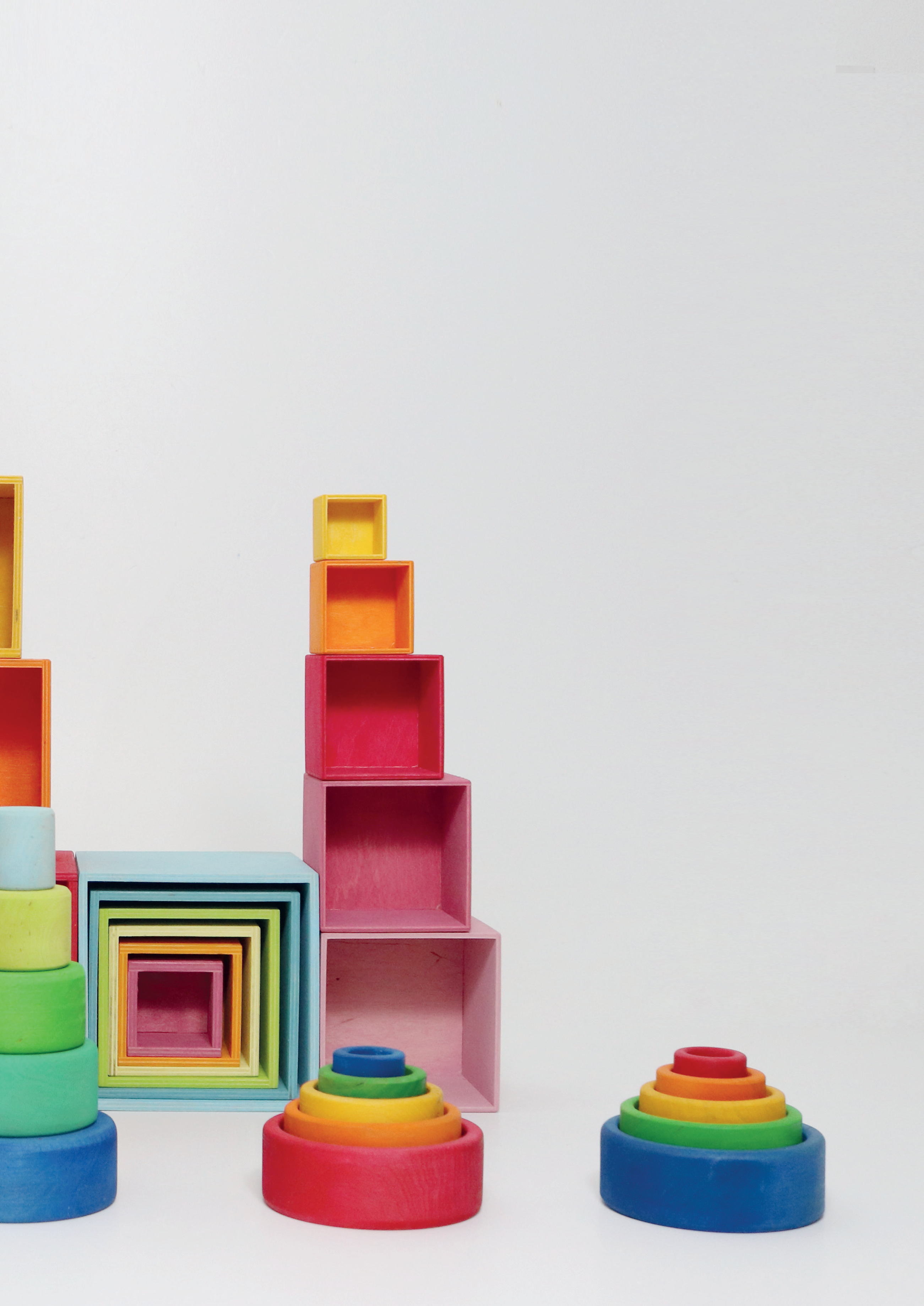 The Set of Bowls is a versatile toy for the children: they can stack and sort the bowls by size and colour, build with them, use it as cooking pot or plate, collect treasures etc.