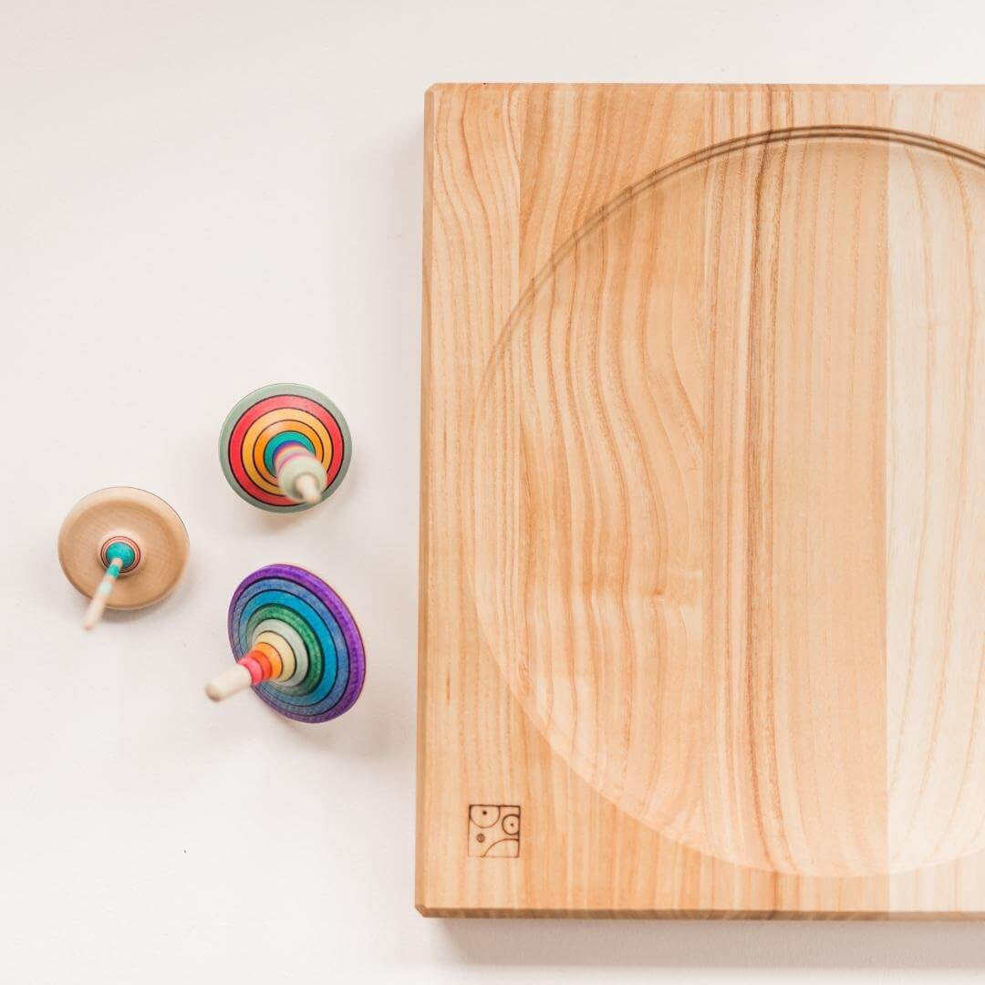Mader Kreiselmanufaktur was founded in 1991 by Klaus Mader, a very skilled carpenter with a love for handcrafted wooden toys. He has a small but mighty workshop found in the foothills of the Austrian Alps which hand makes not only traditional spinning tops but also skipping ropes, kaleidoscopes and yo-yos. Each spinning top is painstakingly made by hand, often by Klaus himself, out of locally sourced wood with some tops requiring up to 20 different stages such as wood turning, burning, embossing, carving, brushing, painting and varnishing. One can’t help but admire the attention to detail in every creation.