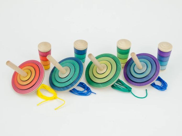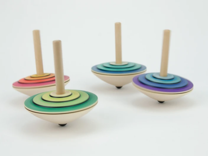 My first Spinning Top with starter is a great first top that will stay with you for years. Even the youngest children are able to put the top in motion by drawing it through their hands. You'll be amazed at how long these tops spin!