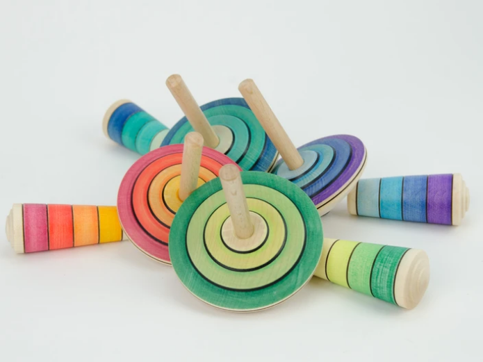 My first Spinning Top with starter is a great first top that will stay with you for years. Even the youngest children are able to put the top in motion by drawing it through their hands. You'll be amazed at how long these tops spin!
