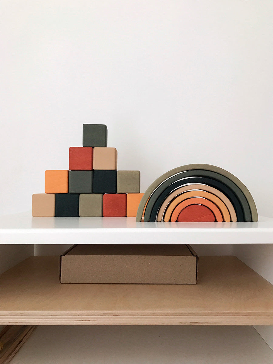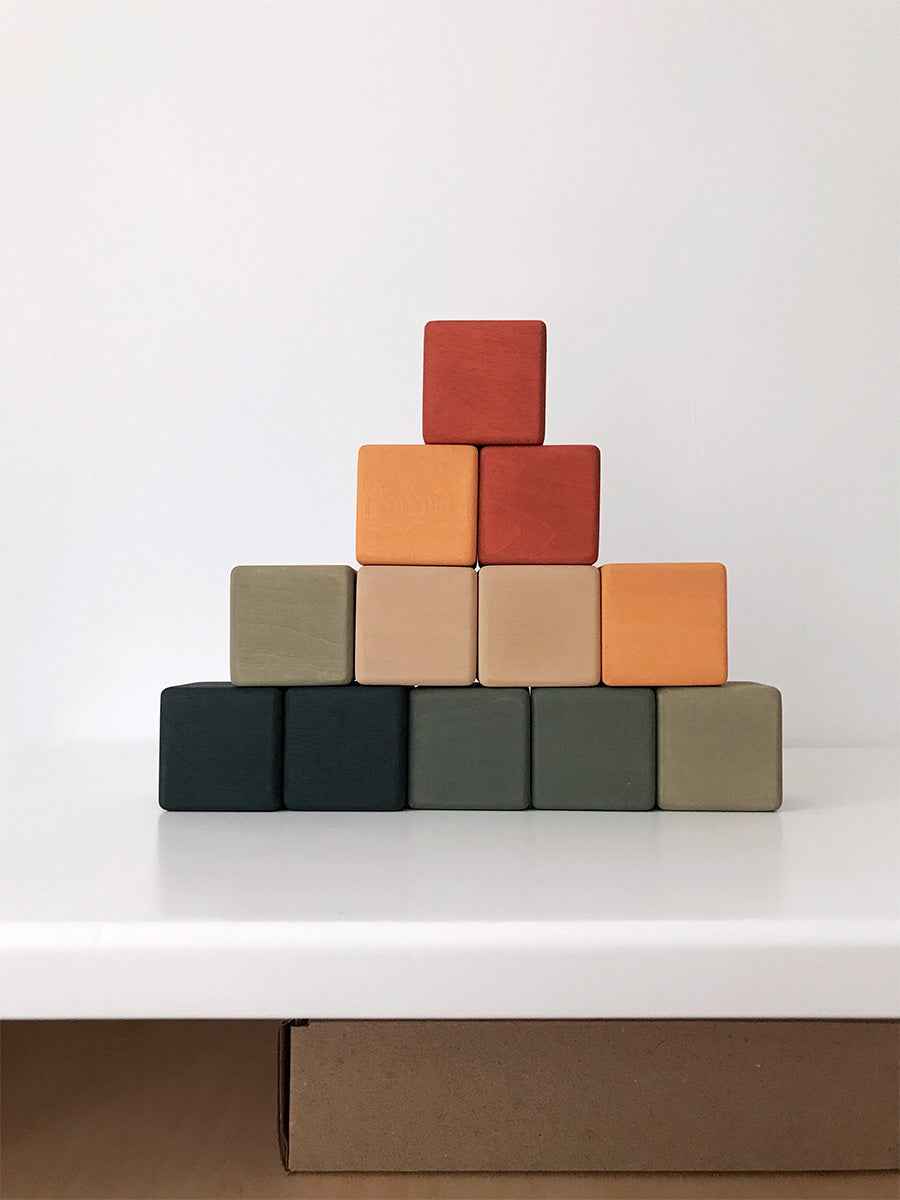 Wooden coloured blocks set is essential toy for a kid. Playing with it, first of all kids develop fine motor skills by holding cubes in hands, turning them around, learning shape and how it feels to touch. With time, children start building towers with blocks: it helps to develop and improve coordination skills.