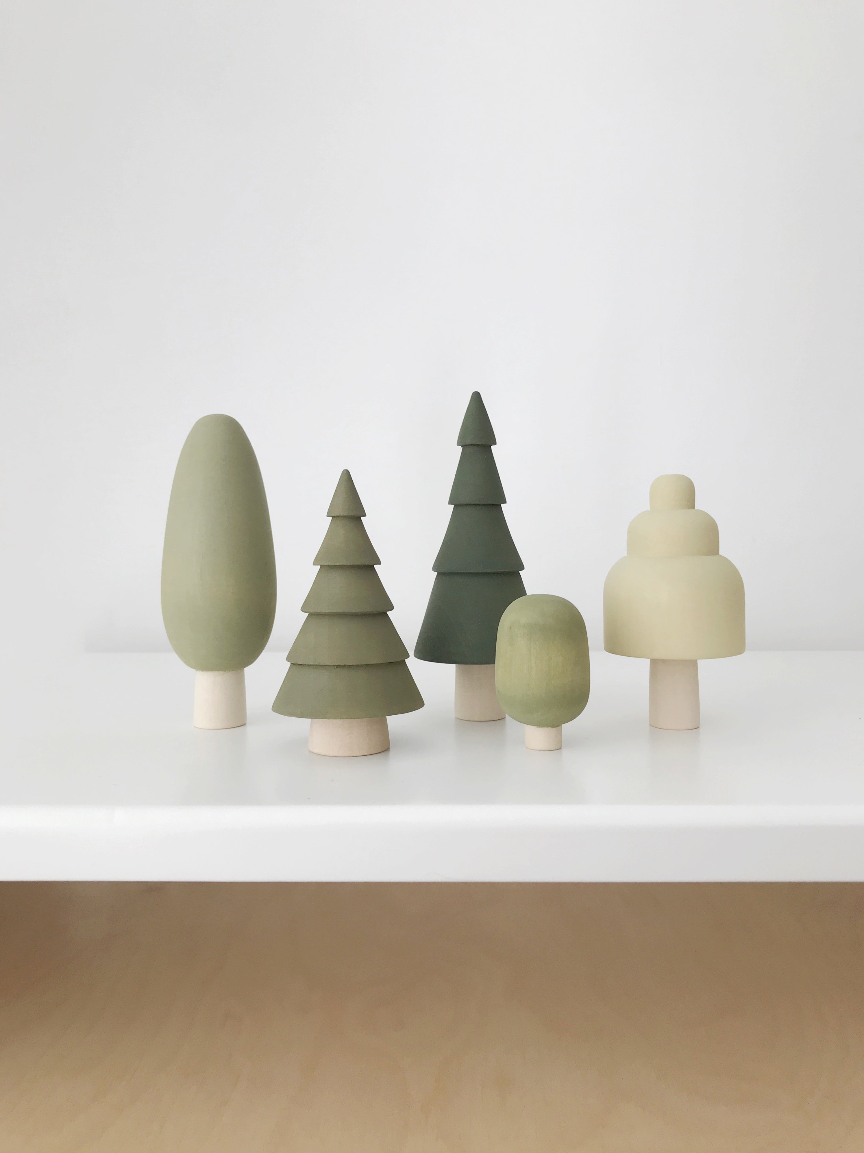 The set includes 5 tress: 2 fir trees and 3 leaf trees.
