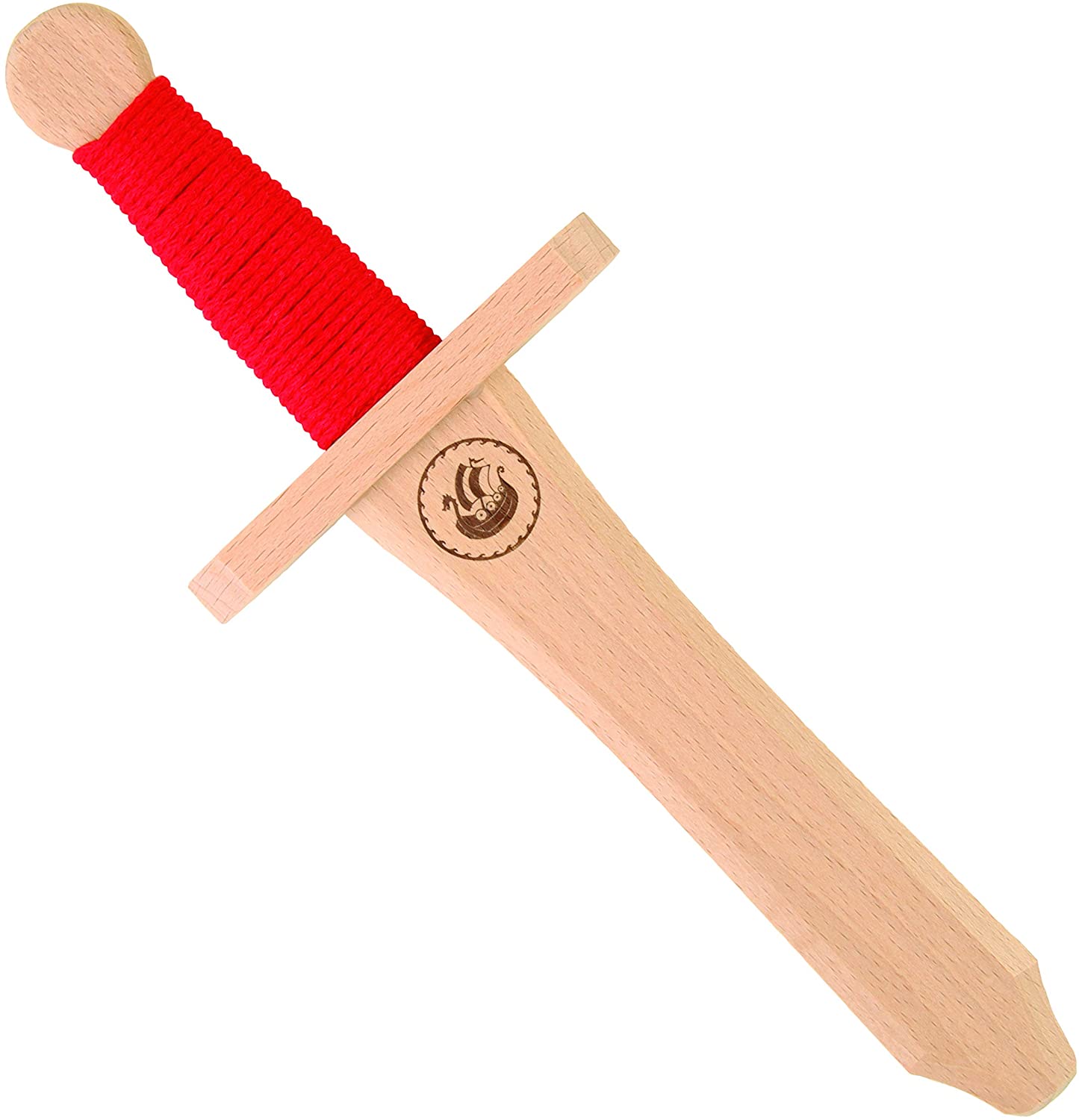 The Snorre mini set in red consists of a small dagger and sign. The dagger is made of sturdy beech wood and has been manufactured with great attention to detail by the toy factory in Dollnstein, Bavaria. It is the first choice when it comes to quality and durability. The sign is also made of wood and has been printed with the motif of a Viking boat. On the back of the sign there is a bonded leather strap which is particularly robust. With their own imagination, the little knights, princesses, Romans, pirates and Vikings experience the craziest adventures.