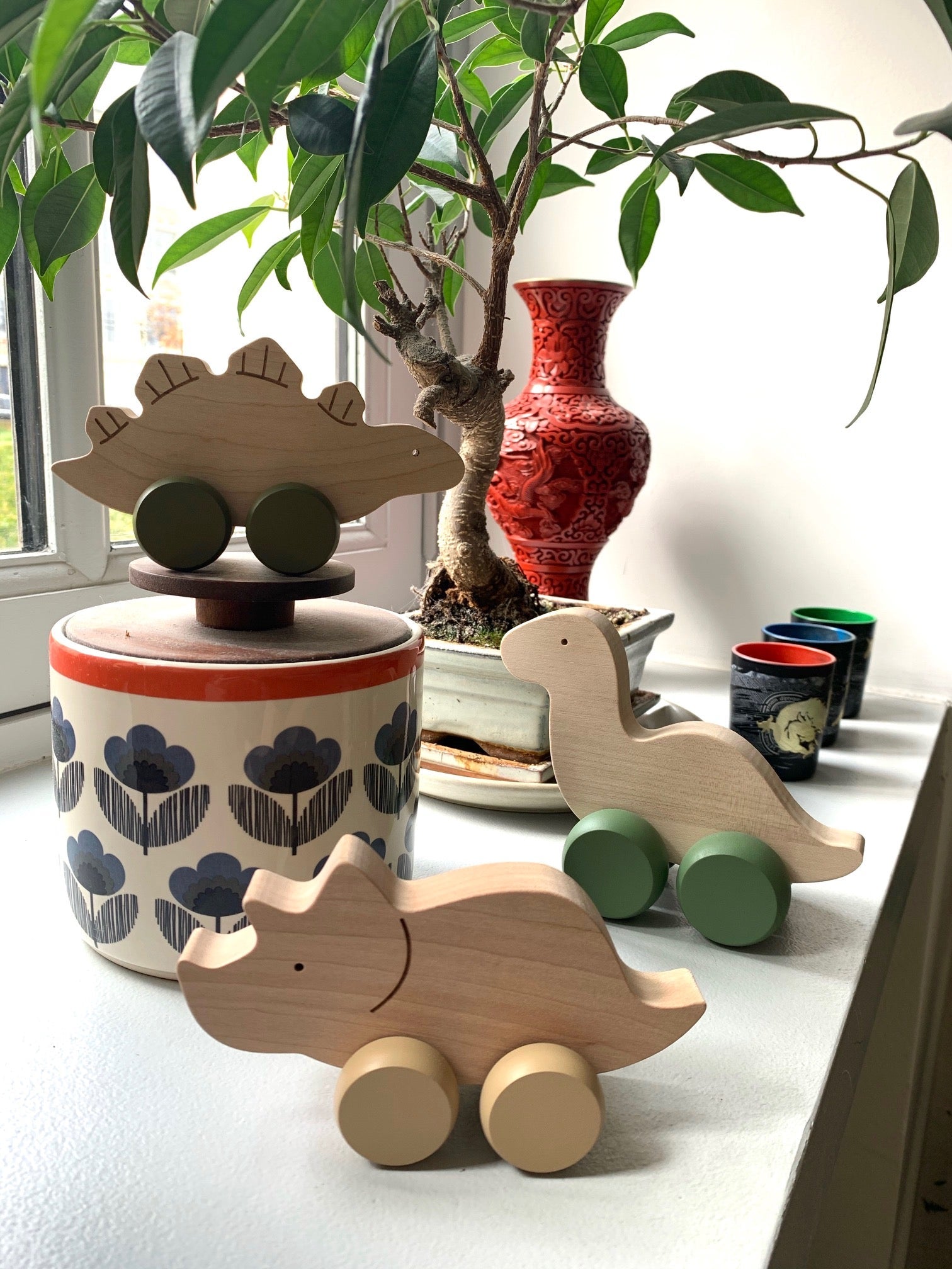 Wooden Triceratops Push Toy