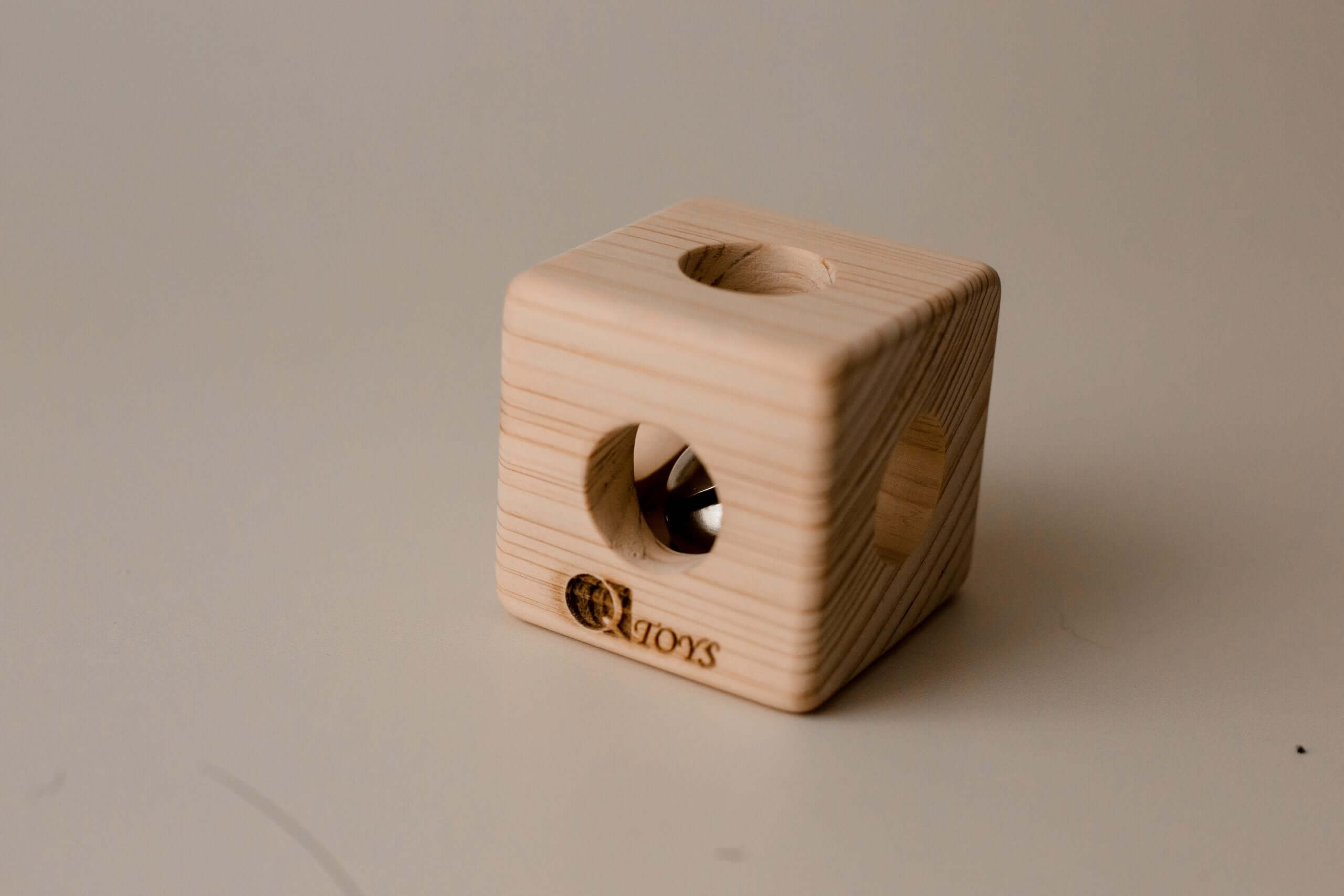 The Cube rattle offers babies a grasping experience and offers a gentle sound as the cube is shaken. Suitable for babies 3 months+ under adult supervision. Measures 45mmx45mm