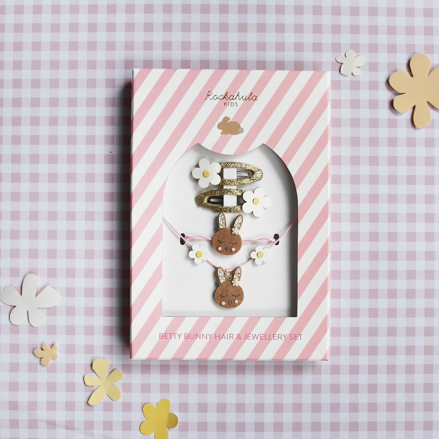 Our sweet pack of two bunny themed socks bring a whimsical springtime feel to your feet! This set includes one pair with soft pink stripes and an adorable bunny face and a second pair with playful bunnies and dainty daisies! Made with organic cotton, they're perfect for everyday activities. Perfect to bring a little hop to your step!