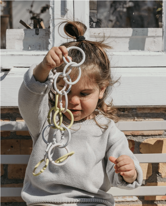 BIBS Loops are meant to be both practical and great fun for your child. They are perfect in the stroller or bed for hanging toys, for playing and even for babies developing teeth. Use BIBS Loops as a stroller chain, as a suspension in the car seat, over the changing table - only the imagination sets the limits. The BIBS Loops are designed as a multipurpose product to use both on the go and at home.