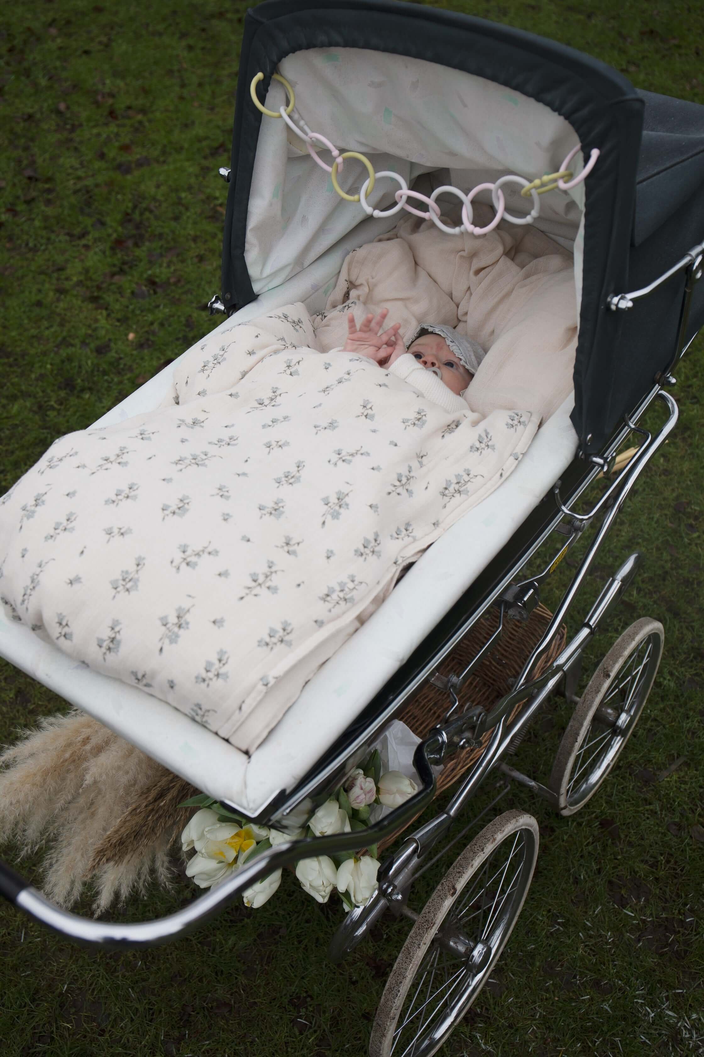 12 pcs. BIBS Loops put together reach from one side of the pram to the other.