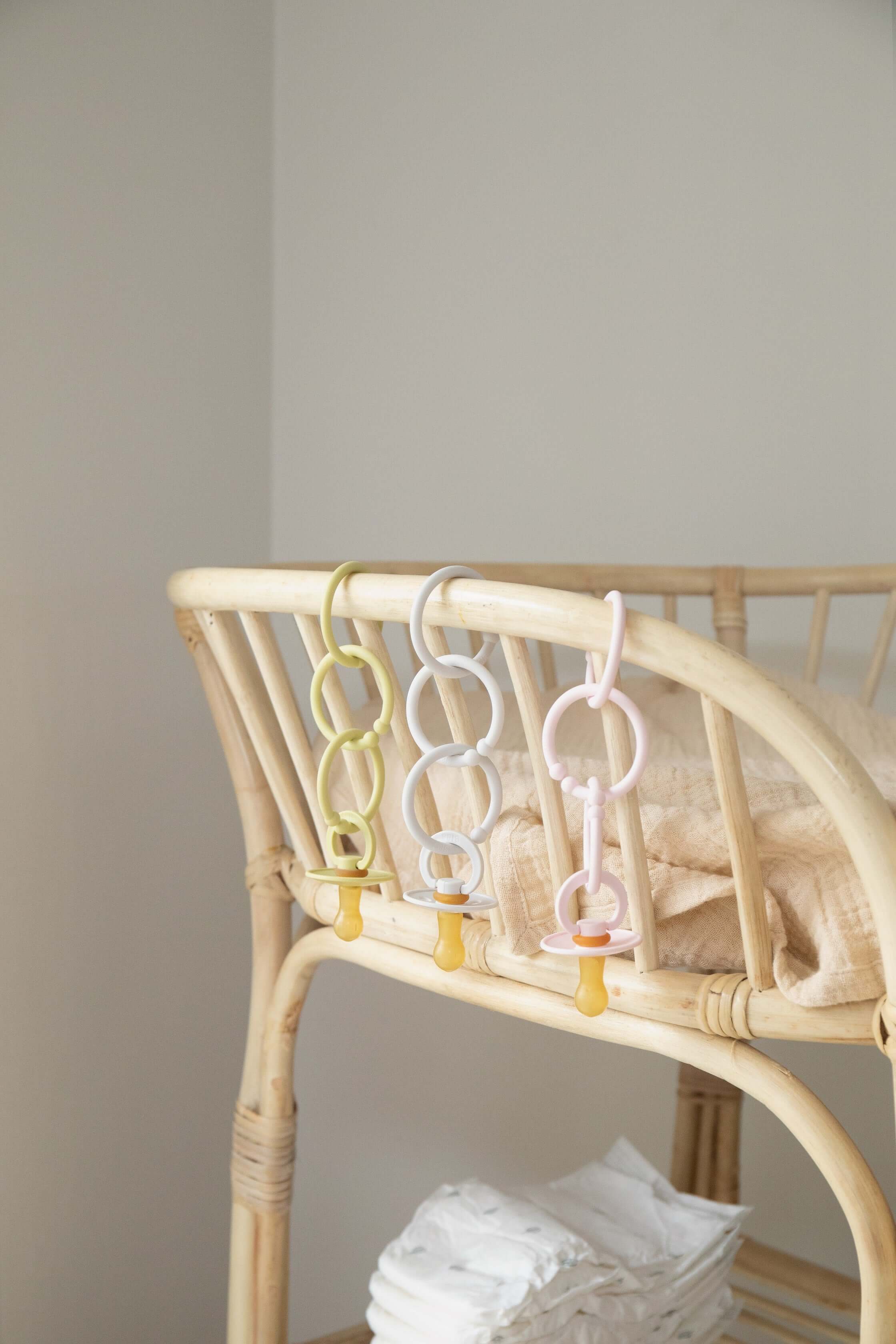 BIBS Loops are meant to be both practical and great fun for your child. They are perfect in the stroller or bed for hanging toys, for playing and even for babies developing teeth. Use BIBS Loops as a stroller chain, as a suspension in the car seat, over the changing table - only the imagination sets the limits. The BIBS Loops are designed as a multipurpose product to use both on the go and at home.
