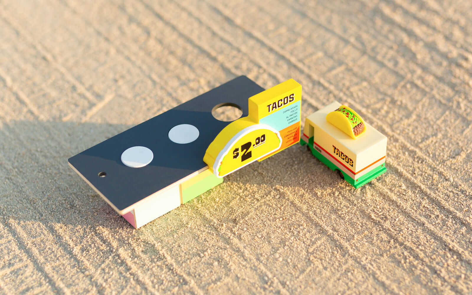 It is scaled to work with our CANDYCAR® line. A step-by-step manual is also included to help with setup. *Does not include van or other food shack signs. No glue or tools are required. Assembly time is measured in seconds.