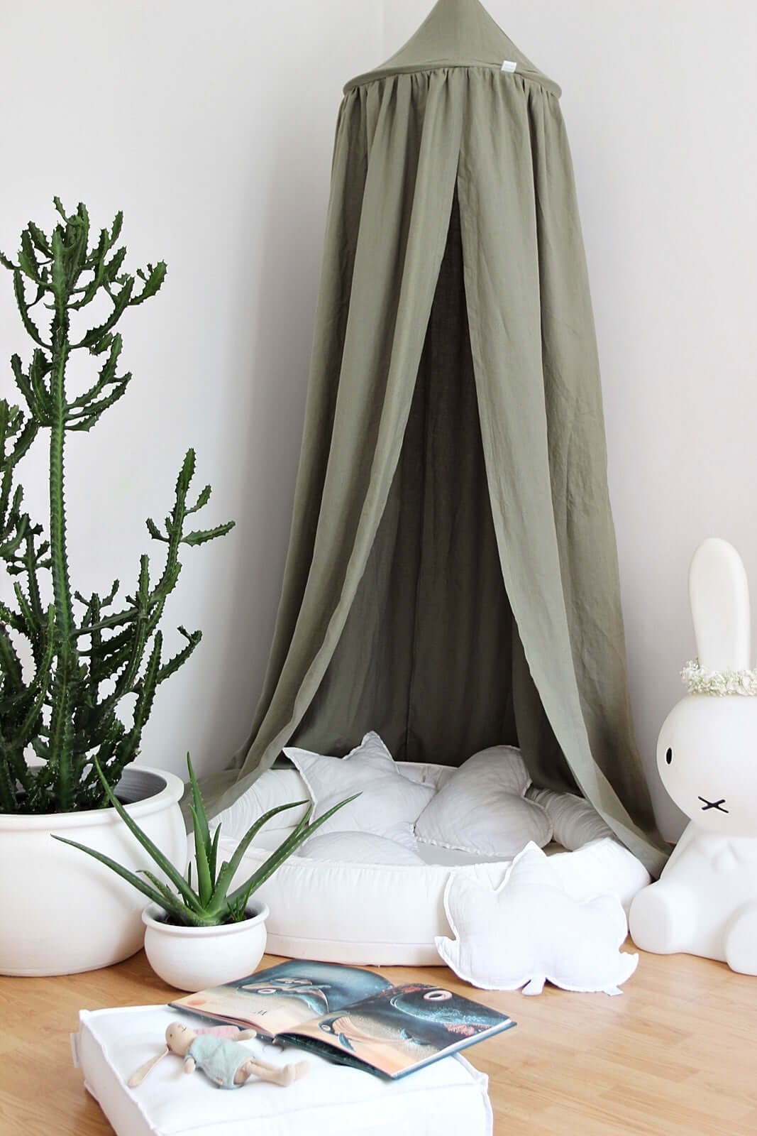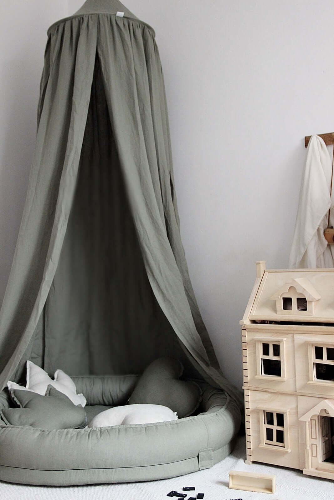 By combining the canopy with the Junior Nest or a linen mat, you will create a cozy corner for fun and reading together. Who does not dream of such a mysterious corner ?! There are many options for enchanting a room and creating a unique atmosphere with a canopy.