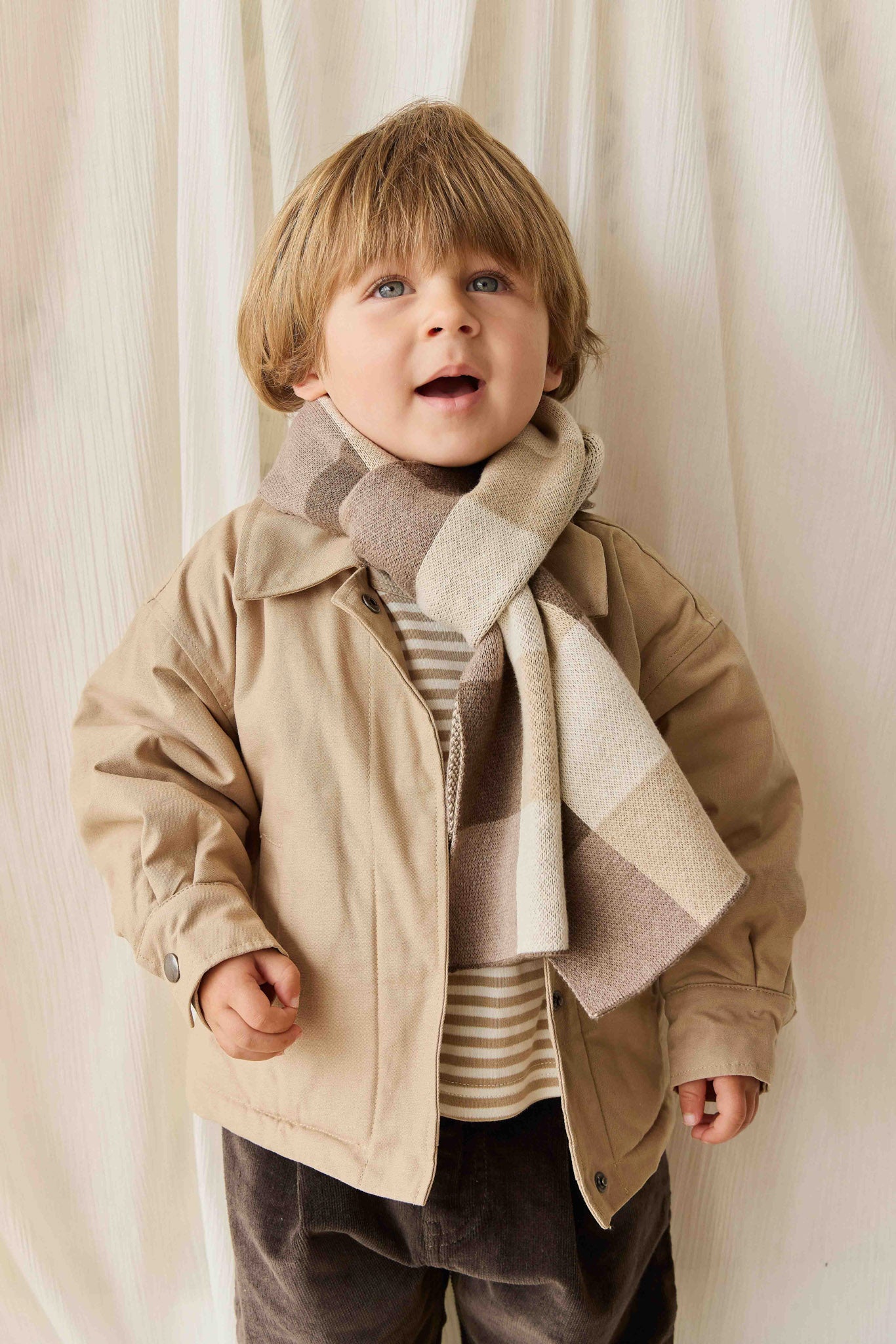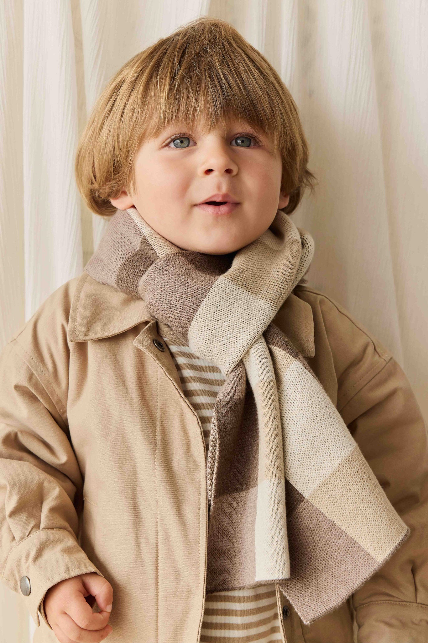 Wrap your little one in cozy charm with the Checkered Scarf | Brioche. Featuring a playful brown checkered pattern, this scarf adds a warm, stylish touch to any outfit while keeping chilly winds at bay. Soft and comfy, it’s perfect for daily adventures or brisk walks, making every cool day a bit brighter and snugglier.