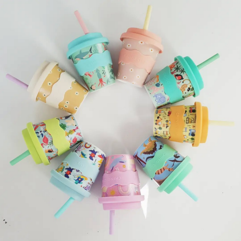 Biodegradable bamboo based cup with a silicone lid and CHOOSE your straw colour.