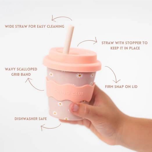 Chino Club | Baby Chino Cup 4oz + Straw | Pink Daisy