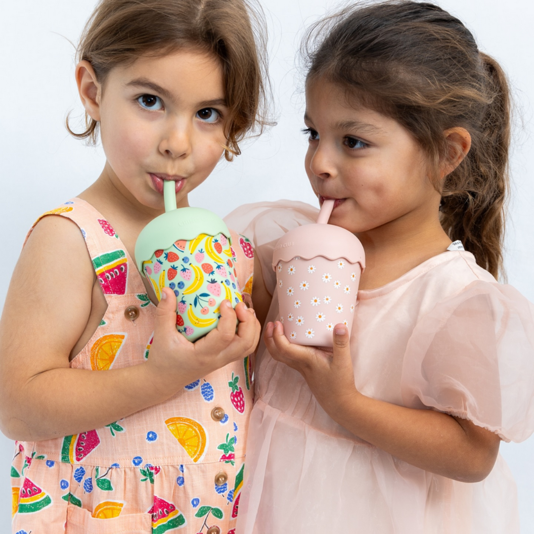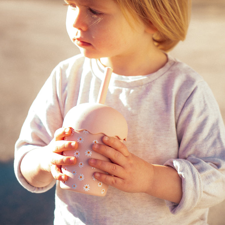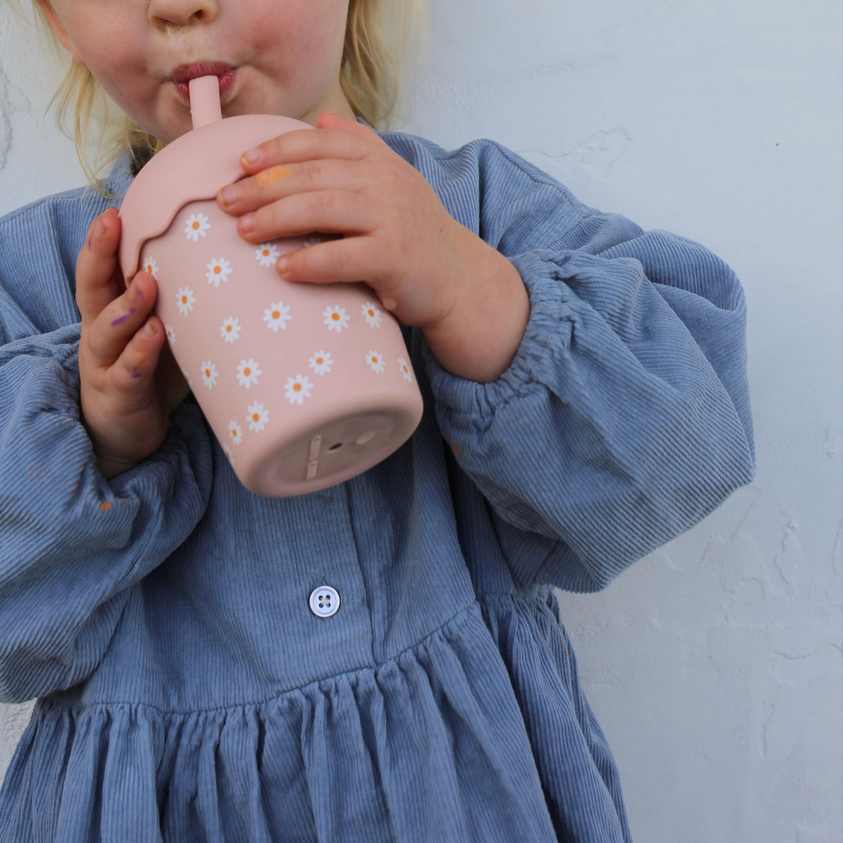 Chino Club | Mini Smoothie Cup & Straw 200ml | Pink Daisy