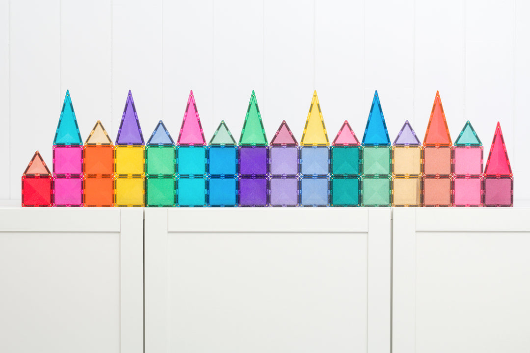 Featuring squares, plus a mix of isosceles and equilateral triangles all bursting with multi-coloured sparkles, this open-ended pack is perfect for building shimmering castles, towers, bridges, animals and so much more!