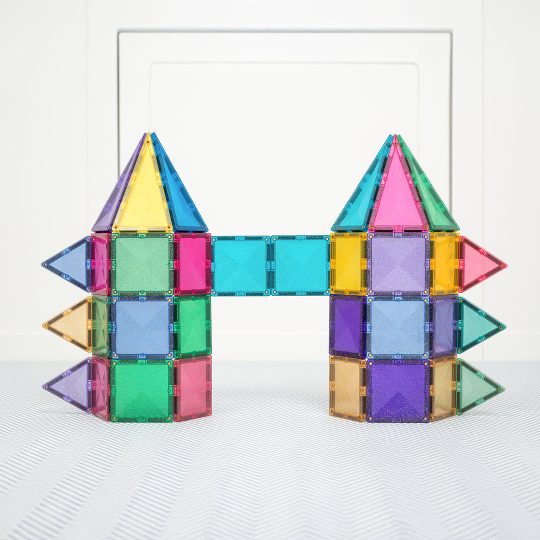 Designed to be loved by all, this pack is enjoyed by a wide range of ages, abilities and interests. With so many ways to create, learn and play, children can challenge their skills and increase the complexity of their designs as they grow, making CONNETIX a favourite family toy for years to come! This perfect standalone pack to start your magnetic tile journey or grow your collections to level-up builds and transform your play, one sparkly tile at a time!
