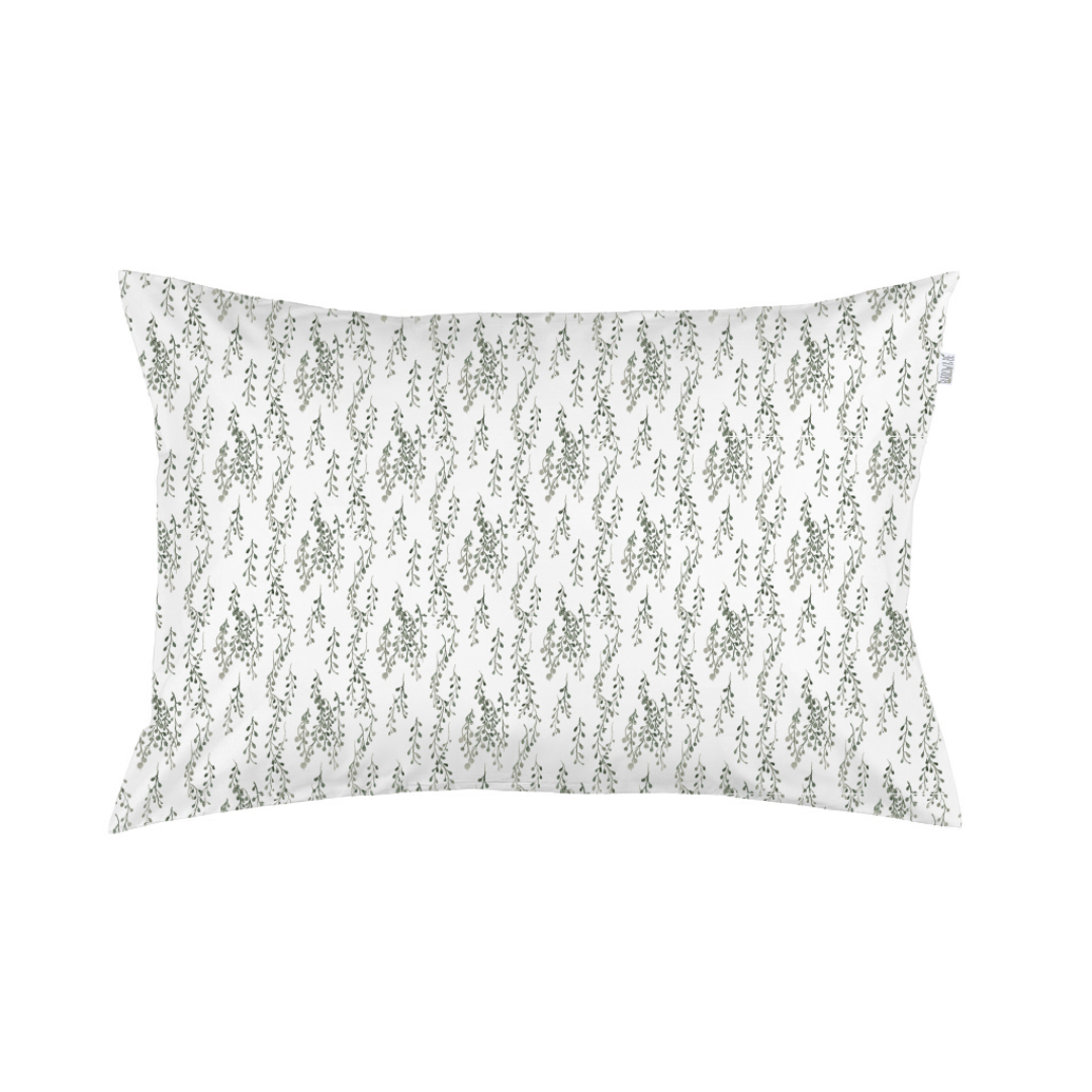 Our new String of Pearls print features delicate strands of pearls in gorgeous forest green on a classic off-white background. The quilt is backed and bound in soft sage green.