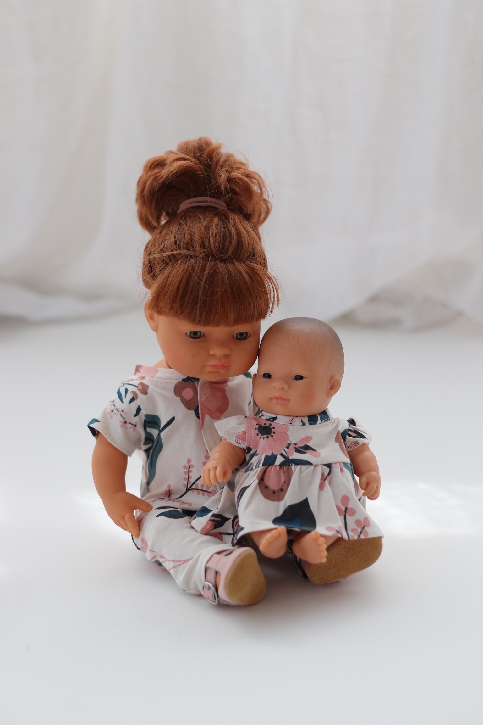 This sweet dress is designed to fit the 38cm Miniland dolls (there is also a version to fit the 21cm Miniland dolls too), but it should also fit most doll brands in the same length.