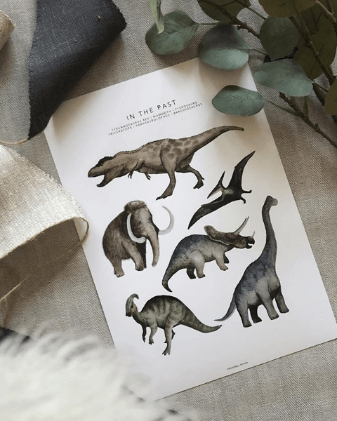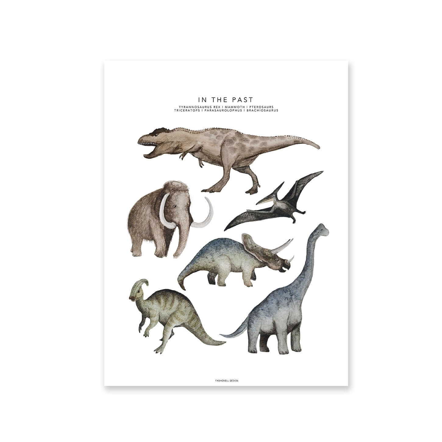 T-rex, mammoth, pterosaurs, triceratops, parasaurolophus and brachiosaurus.