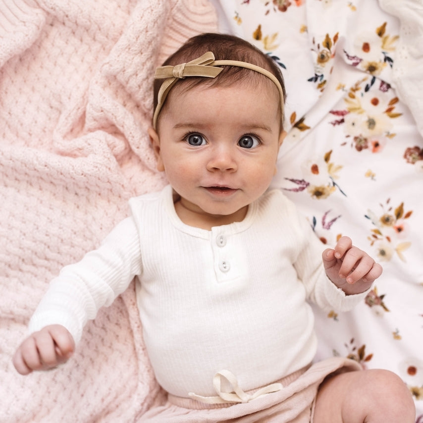 All season fitted bassinet sheet in Certified Organic Cotton. Multipurpose use as a change pad cover.