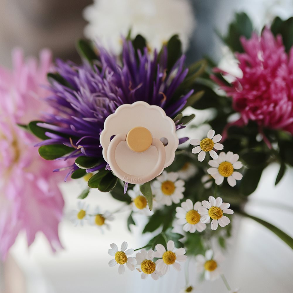 - 1 pc. FRIGG Daisy round pacifier in the color: Cream