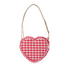 This love heart bag is adorable and will make little hearts skip a beat! Made in our gorgeous red gingham fabric, with a sweet ruffle finish. This bag is fully lined in a striped fabric and features a mag-dot opening and adjustable gold strap with breakpoint for safety. Totally love-able! Bag dimensions: 19cm x 17cm x 1cm. Strap drop length: 46cm.