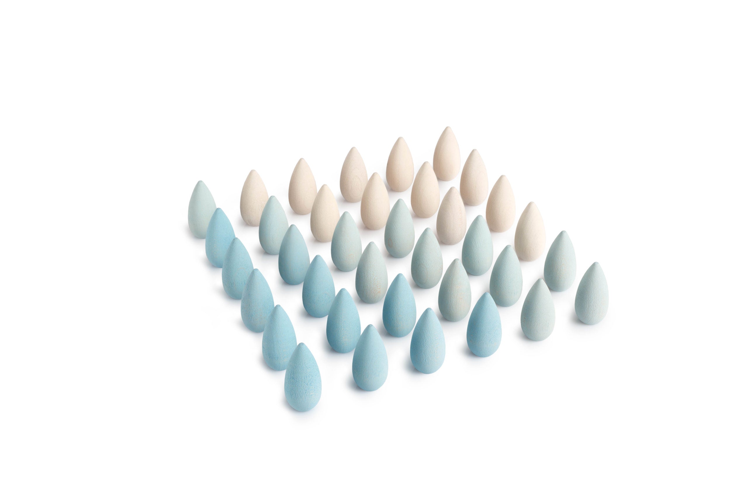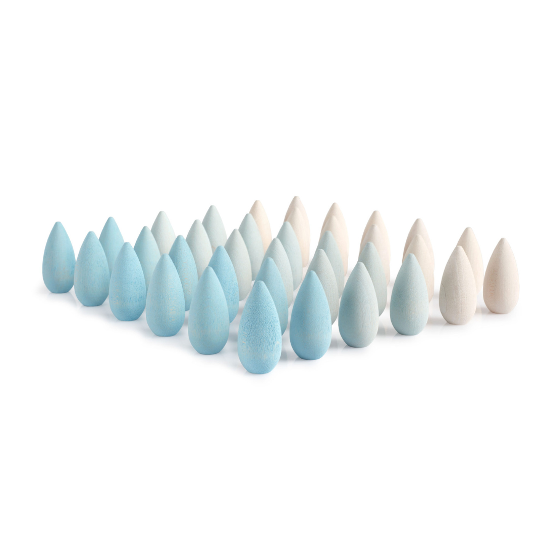 This set of thirty-six little snowflakes in varying shades of pale pastel blue and white can also be used for developing mathematical skills and thinking, and are useful as counters. Handmade from sustainably sourced wood and finished with non-toxic colours. Grapat Mandala sets are a perfect addition to imaginative play, role play, creative picture making and story telling. The possibilities are inspiring.