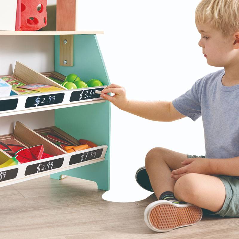 Featuring a cash register, which includes a scanner with light and sound effects, it can help children to promote their calculating and numerical skills in the transaction process. In addition, the two display shelves included in the design allow it to hold more produce and provide a larger display space.