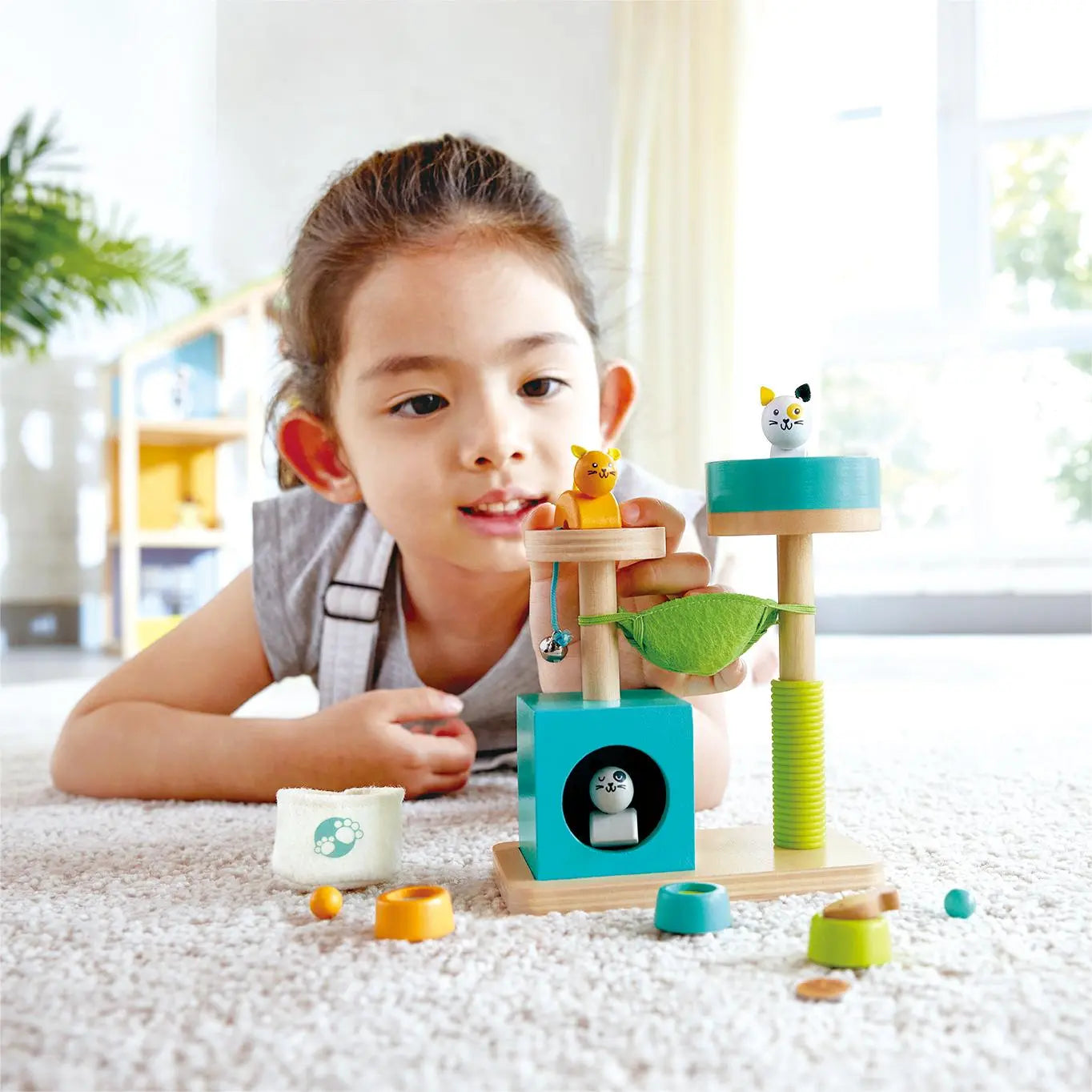 Design a perfect playtime paradise for your beloved cat with our Cat Playset. It comes with various accessories and a cozy cat house to provide endless entertainment. To enhance children's imagination and storytelling skills, we encourage them to name each kitty in their playset and develop unique personalities and traits for them.