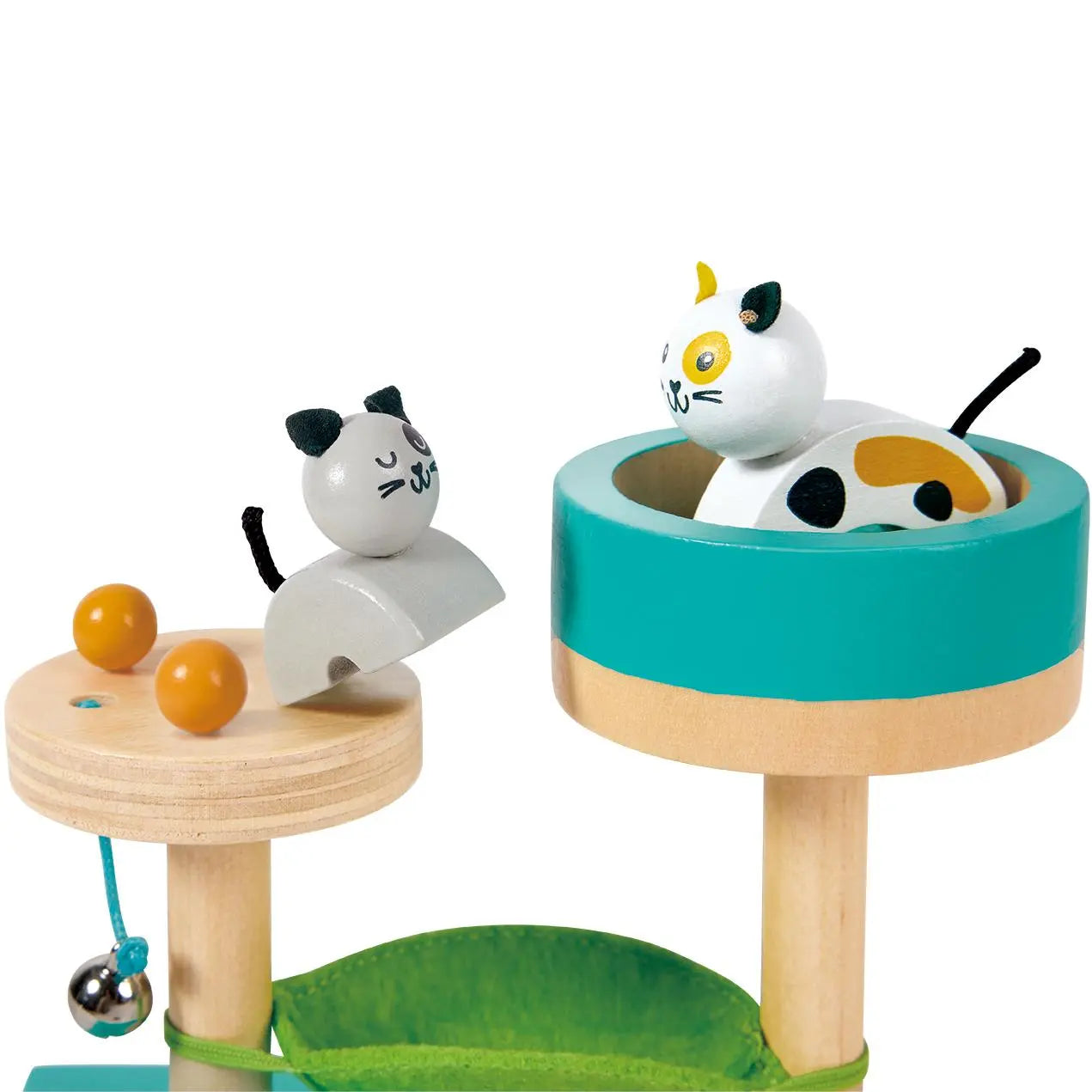 - Comprehensive Set: This set includes one cat tree, three cats, three food bowls, a food storage bag, five food cards, two balls, and a fish, offering a diverse range of accessories for interactive play.