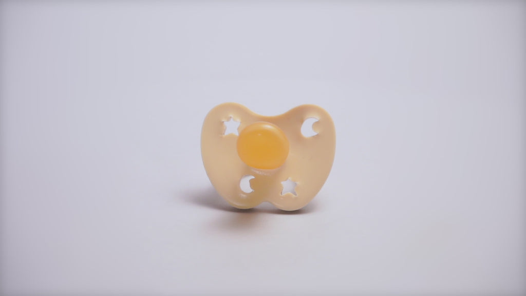The gentility of Milky White can pierce easily through any soul, creating an atmosphere of peace and fun. Milky white has more white than yellow. Made from natural rubber, these pacifiers feature a seamless build that makes them easy to clean and hygienic. They come in both the round and orthodontic teat options which are soft to touch and gentle on your baby's face and lips. There are teat options for newborns and babies up to 36 months.