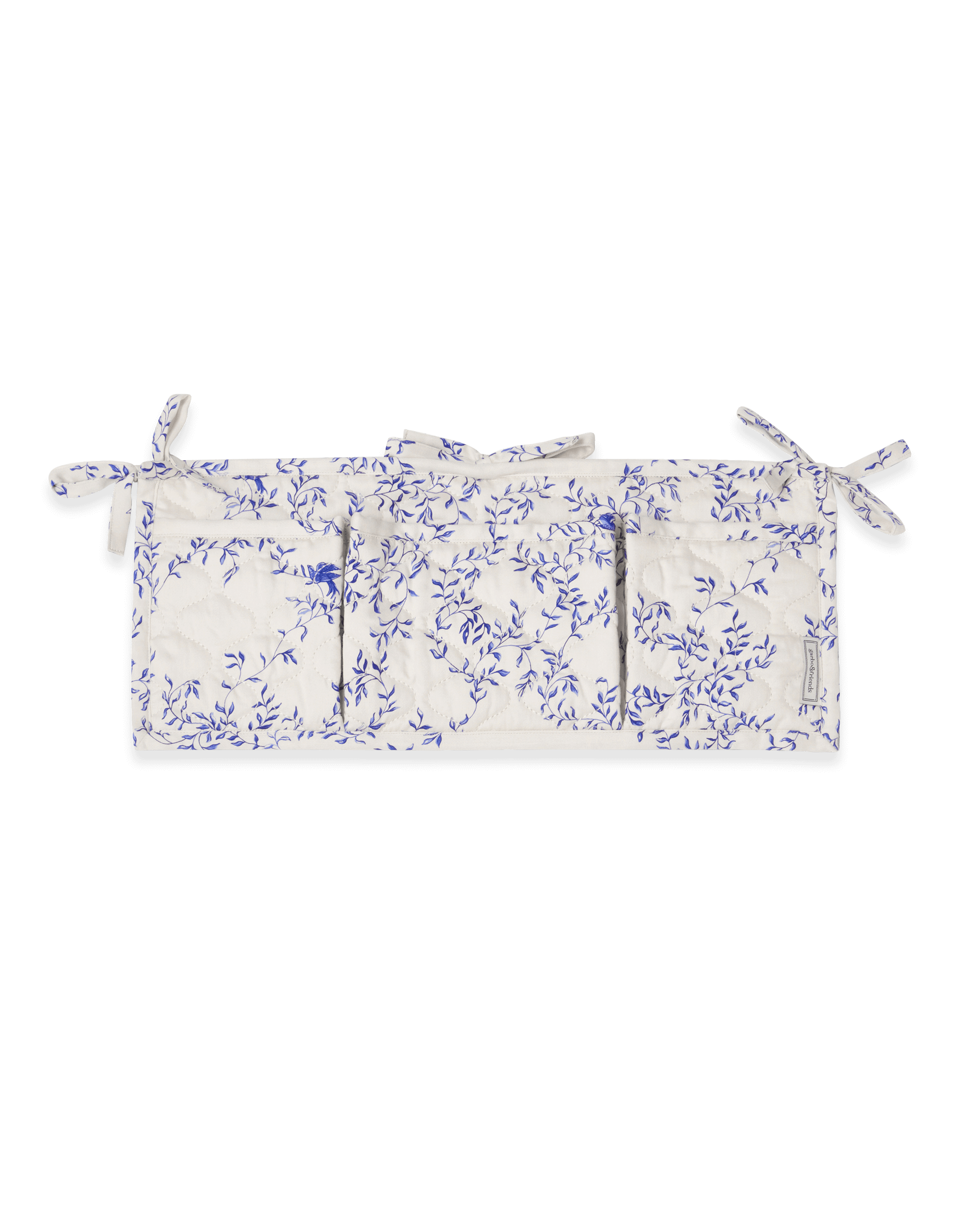 Quilted bed pocket with three sections made from organic cotton satin. Perfect for hanging on the side of the crib to ensure that smaller necessities such as pacifiers, rattles and bibs are always within reach.