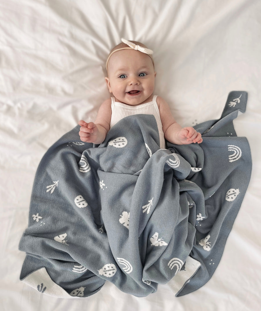 Knitted Heirloom Blanket | Enchanted Garden | Sky Blue