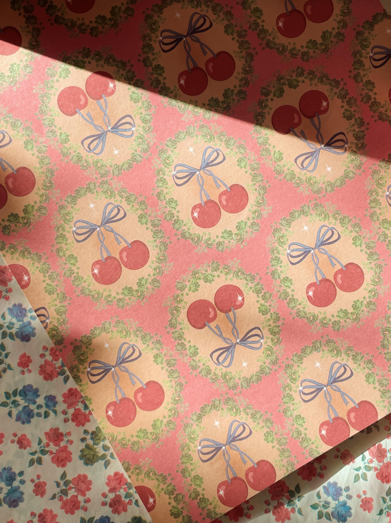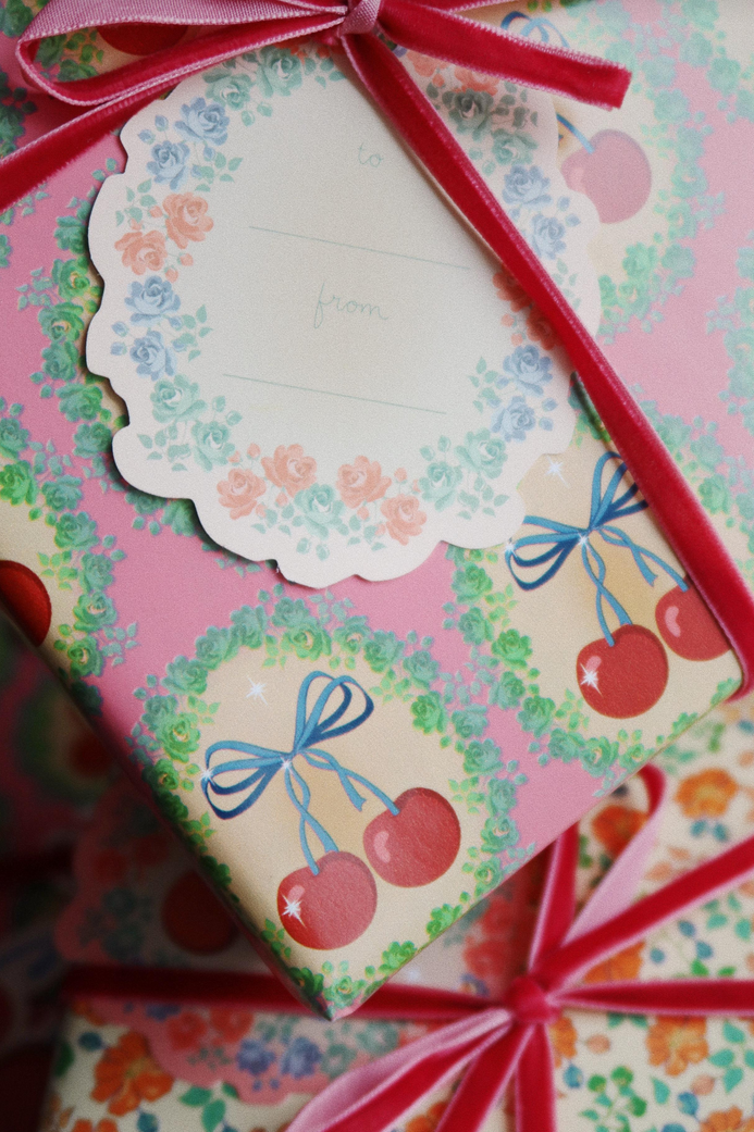 Konges Sløjd Gift Wrapping Paper Double-sided | Cherry Bow Kaluka HUGE 200M ROLL