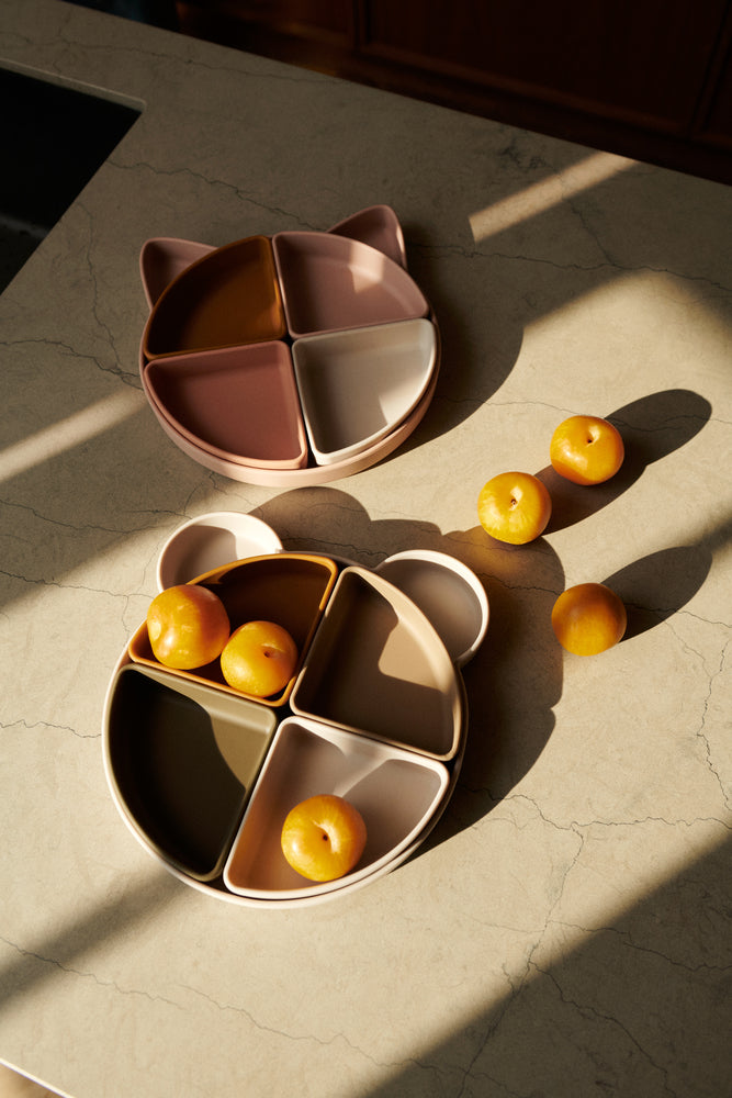 Make mealtime fun and fuss-free with the baby-friendly Ryle tableware set. A combination of durable mealtime staples, the set includes the Liva fork, Liva spoon, Neil cup, Iggy bowl, and Olivia plate, all adorned with unique LIEWOOD prints. Crafted from soft and safe silicone, these tableware pieces are noiseless and dishwasher safe.