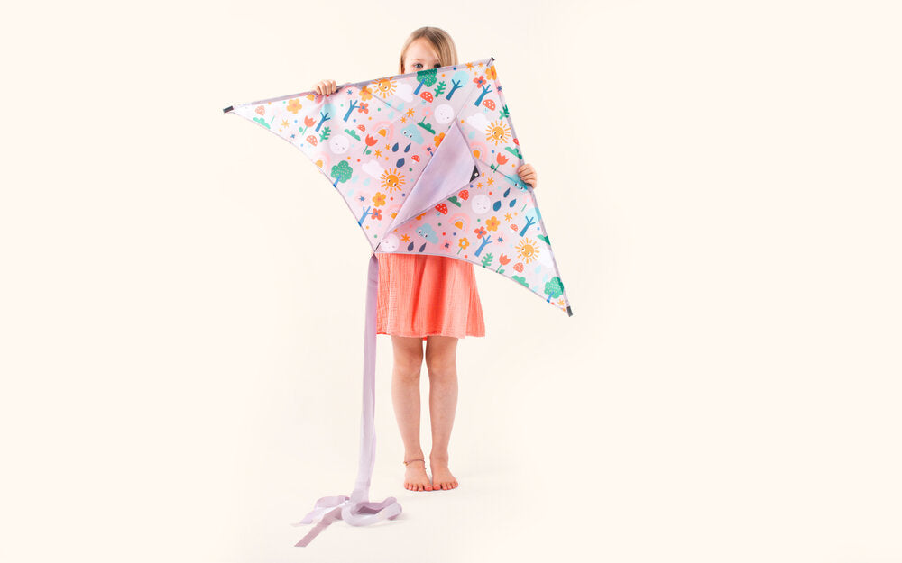 Fall in love with these whimsical characters. The cheeky looking mushroom is sure to get a smile while the background is just sitting there being the perfect shade of lilac. Hands down the sweetest kite ever made.