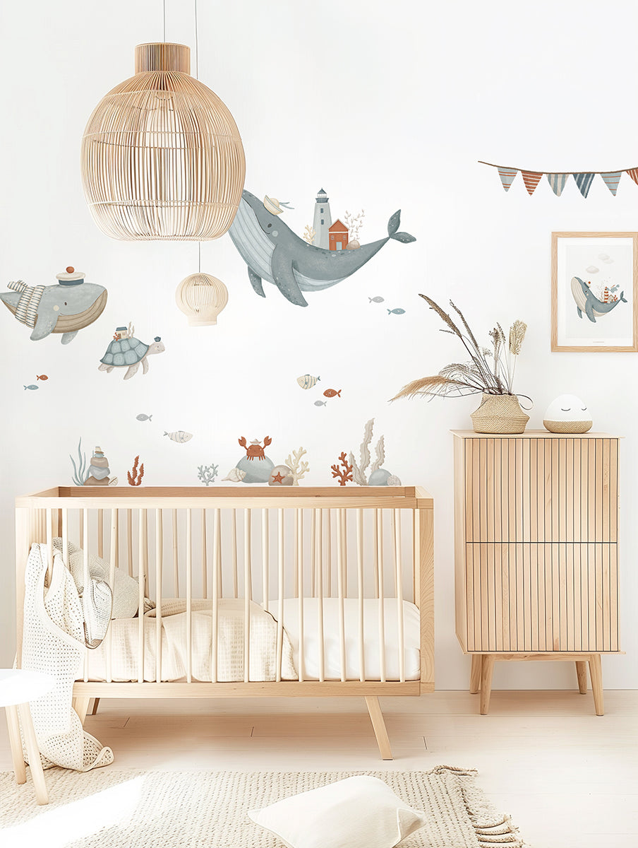 Dive into the enchanting depths of “Lotán” – a whimsically styled nursery theme that brings the serene undersea world right into your little one’s bedroom.