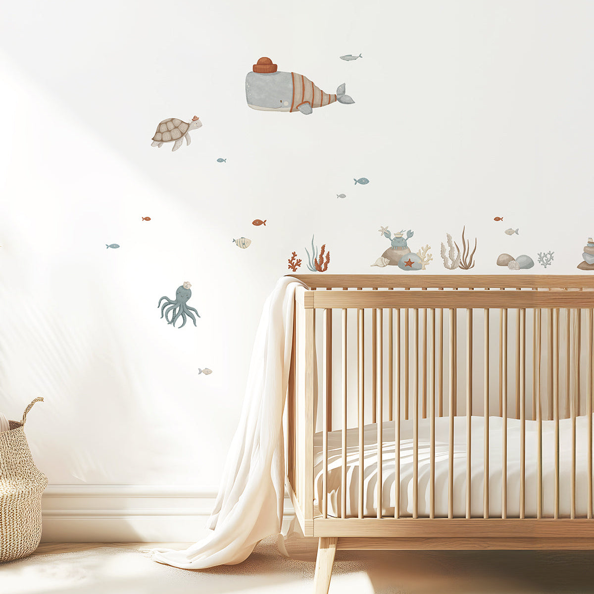 Dive into the enchanting depths of “Lotán” – a whimsically styled nursery theme that brings the serene undersea world right into your little one’s bedroom.
