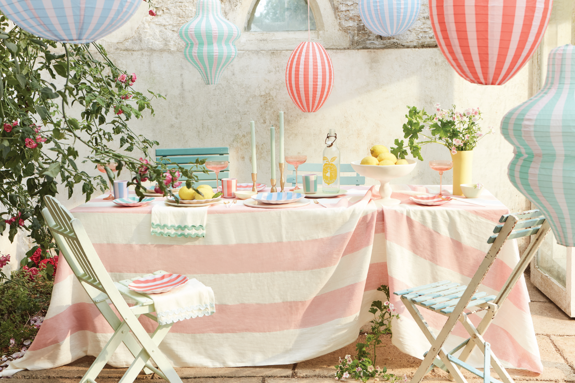 Bold stripes are so on-trend, and look amazing on these reusable plates for party after party. Add a pop of coloUr to your table with the wonderful combination of red, mint and blue stripes teamed with pale pink.