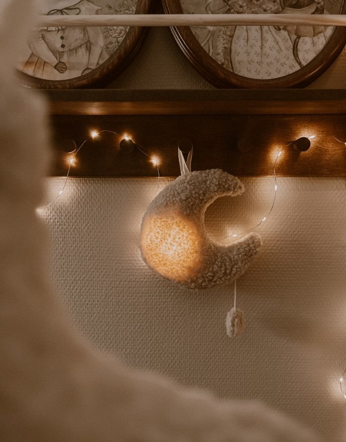 Our Mobiles are made of organic cotton with a selection of excellent fabrics for the little ones. A light internal has three tonal variations (white, beige and warm) and different intensities and USB charging.